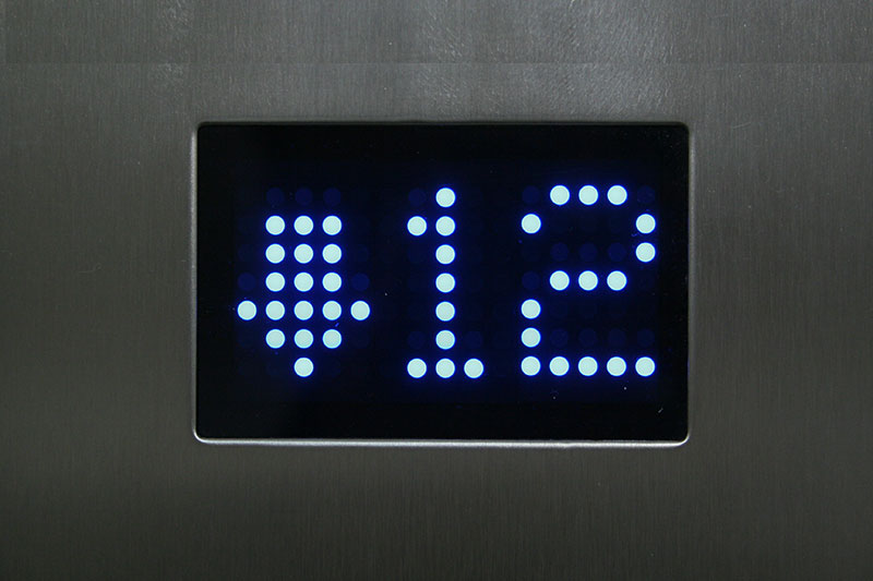 Indicador de posición, flechas direccionales e información de funcionamiento del ascensor.